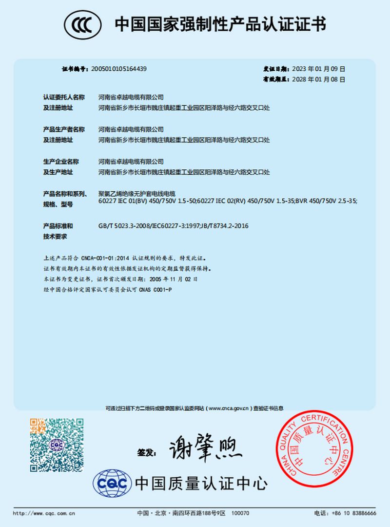 河南省卓越電纜有限公司是一家集生產(chǎn)、研發(fā)、銷售、服務(wù)為一體的河南省**技術(shù)企業(yè),創(chuàng)建于2003年,位于長(zhǎng)垣縣起重工業(yè)園區(qū),占地面積:54000 m2;總資產(chǎn)12000多萬(wàn)元,年產(chǎn)值5.2億元;主要產(chǎn)品有:各種型號(hào)規(guī)格的起重機(jī)扁平軟電纜、橡套軟電纜、耐高低溫電纜、聚氯乙絕緣電線電纜、控制電纜、電力電纜、船用電纜、礦用電纜、阻燃及耐火電纜、計(jì)算機(jī)電纜等;產(chǎn)品廣泛用于起重、鋼鐵、軍事、化工、煤礦、建筑、特種裝備等行業(yè)及領(lǐng)域。通過(guò)CCC認(rèn)證、生產(chǎn)許可證、GB/T45001-2020/ISO45001:2018三體系認(rèn)證等;中國(guó)質(zhì)量萬(wàn)里行理事單位。并被授予河南省電工行業(yè)誠(chéng)信口碑單位、河南省科技型中小型企業(yè)等榮譽(yù)稱號(hào),入選“2017年度河南省“專精特新”中小型庫(kù)。